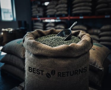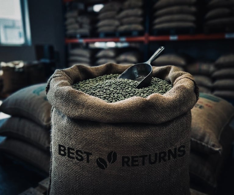 At BEST RETURNS, every shipment carries more than green coffee it carries our identity. Our custom gunny bags are designed to represent the structure, quality, and consistency behind every lot we export.